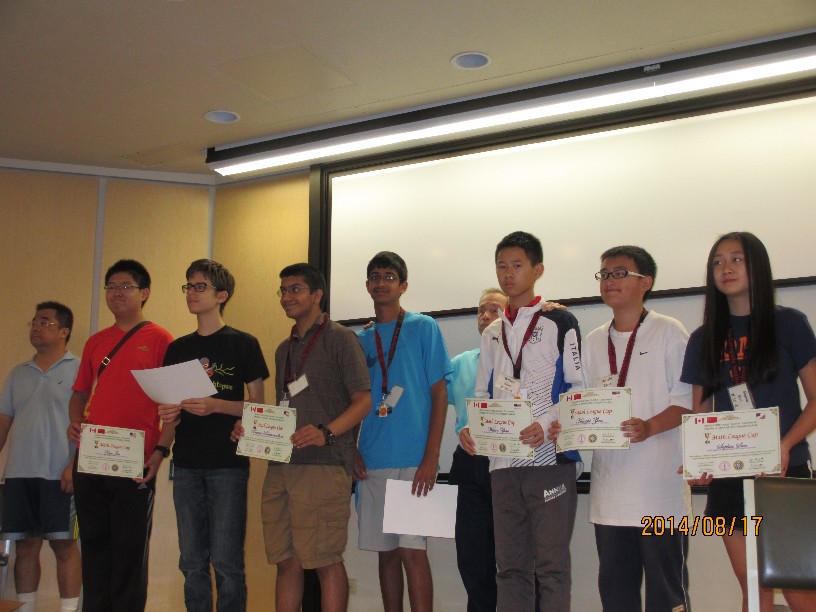 2014年斯坦福大学 - 美国“数学大联盟杯赛”决赛和数学夏令营 (2014 Stanford - Math League Summer Tournament) 6 - 9年级共计76人参赛,其中35人来自中国,36人来自美国,5人来自加拿大。中国队参赛学生名单如下 (排名不分先后):