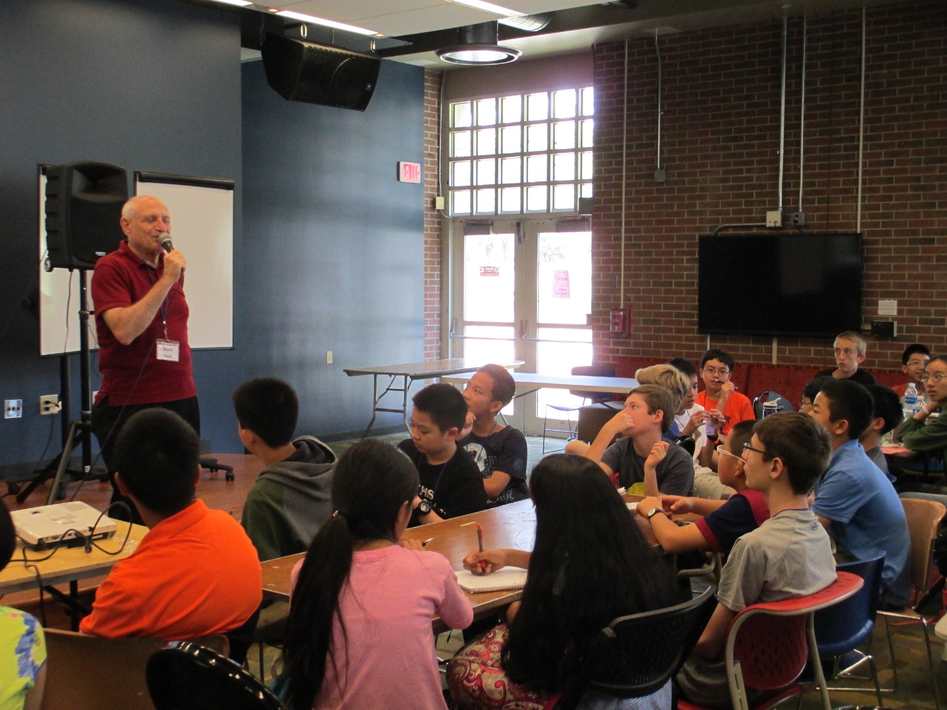 The following are some photos of Dr. Mark Saul's lectures at 2016 Math League Finals and Summer Tournament: