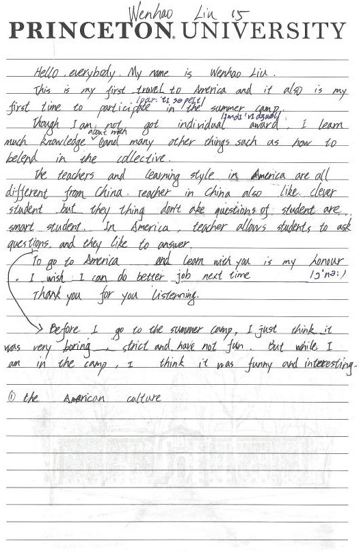 This is my first travel to America and it also is my first time to participate in the summer camp.